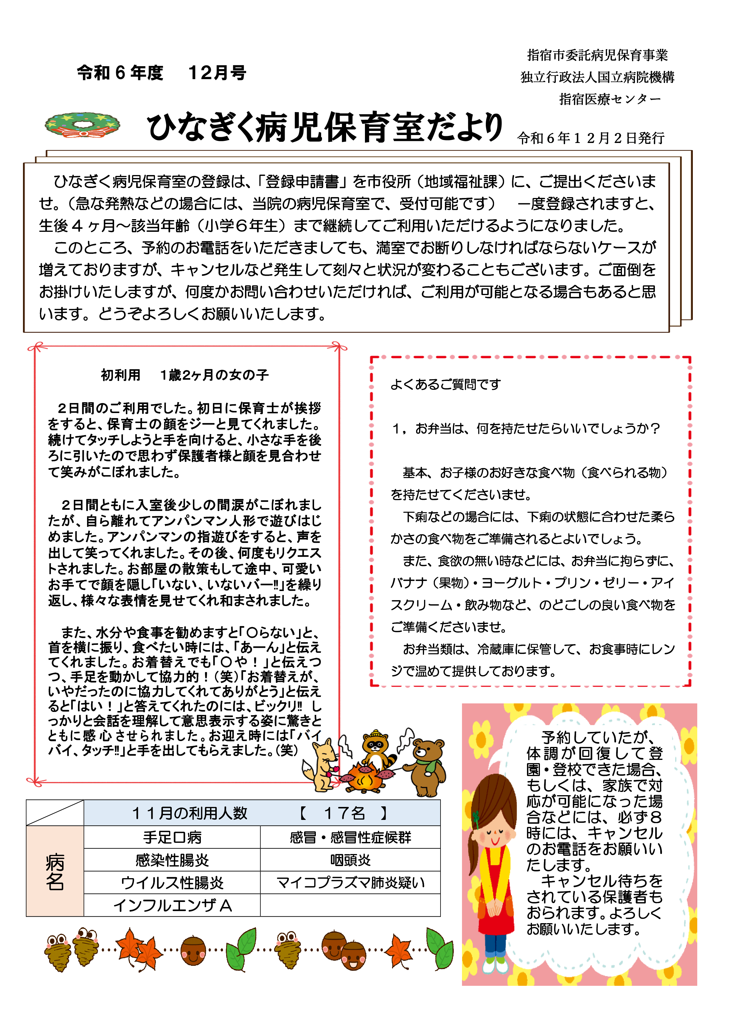 ★「令和6年度12月号ひなぎく病児保育室だより」ができました。