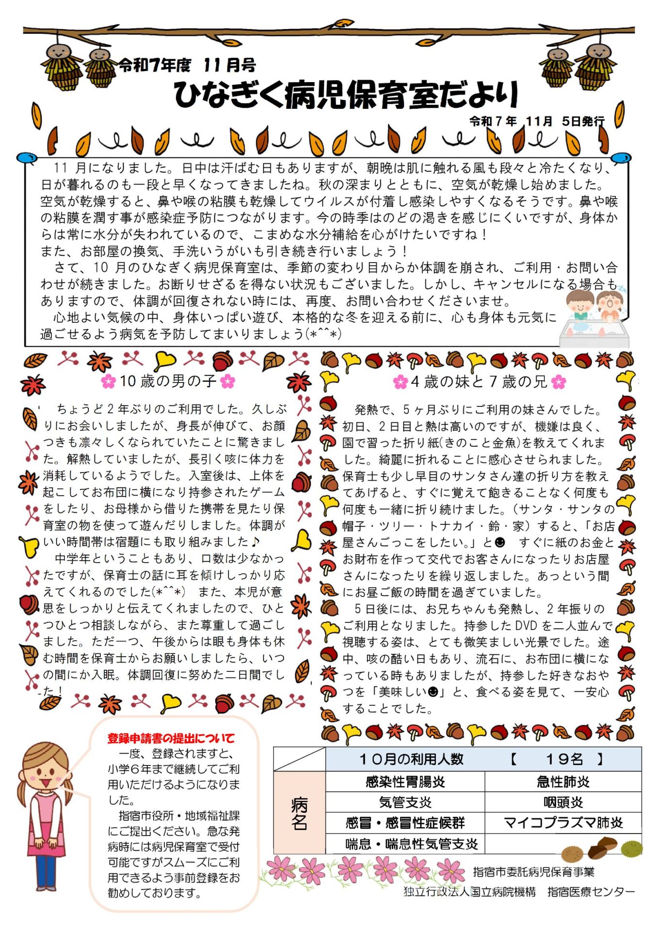 ★「令和7年度11月号ひなぎく病児保育室だより」ができました。